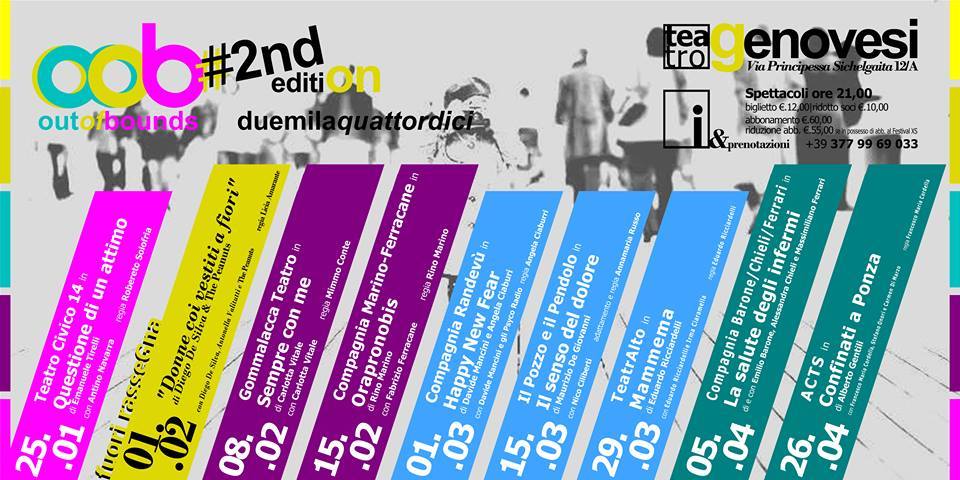 Orapronobis, in scena a Palermo e Salerno, febbraio-marzo 2014 da admin | Dic 11, 2013 | NEWS, ORAPRONOBIS, RASSEGNA STAMPA | 0 commenti ORAPRONOBIS testo e regia di Rino Marino con Fabrizio Ferracane una produzione compagnia Marino/Ferracane Teatro Genovesi a Salerno 15 febbraio 2014 TMO Teatro Mediterraneo Occupato Palermo 30 Marzo 2014 Invia commento Annulla rispostaIl tuo indirizzo email non sarà pubblicato. I campi obbligatori sono contrassegnati *Commento * Nome * Email * Sito web Salva il mio nome, email e sito web in questo browser per la prossima volta che commento.