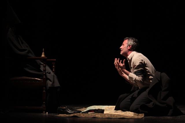 COSENZA In un dipinto del pittore fiammingo Bosch l'”Estrazione della pietra della follia”, un chirurgo è intento a togliere la pietra della pazzia dalla testa di un uomo, convinto che ivi risieda la colpa della sua stupidità. Attorno a essi, un prete e una suora assistono alla scena senza intervenire. L’attore Fabrizio Ferracane con “Orapronobis”, andato in scena ieri al teatro “Morelli”, affronta il tema della follia partendo proprio da «Haiu la petra di la fuddia ‘nta la mirudda», il cervello appunto. Elementi come sofferenza, ma soprattutto pazzia, squilibrio e alienazione di questo spettacolo, scritto e diretto da Rino Marino, hanno permesso a Fabrizio Ferracane di esibirsi in un monologo che è stata creazione di un’interpretazione costante e intensa. Il palco è avvolto da luci soffuse, il sipario è aperto a metà. Una poltrona a sinistra mostra lo schienale al pubblico. Sulla sedia il fantoccio di un prelato, riconoscibile da una mitra, simbolo di dignità ecclesiastica, e campanella sul bracciolo. A destra un’alta croce. Entra in scena sulle voci off di Annamaria La Barbera, Cristina Perrone e Emrelinda Palmeri che recitano come una litania l’ora pro nobis. È tremante, sul viso i segni del dolore e della stanchezza. Indossa abiti più grandi della sua misura, al braccio sinistro e sul petto i segni di un lutto. Ai piedi scarpe alla buona, senza lacci. In mano degli stracci neri che appoggia sulla croce. È in quel momenti che Fabrizio Ferracane inizia a esibirsi in una sorta di “danza della follia” contro un manichino e contro se stesso («Fui vattiatu cu’ l’acqua maliritta», dirà nel delirio).