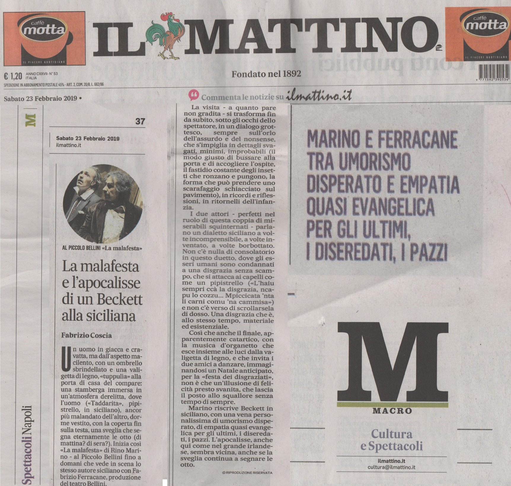APOCALISSE DI BECKETT ALLA SICILIANA di Fabrizio Coscia-Il Mattino da admin | Feb 27, 2019 | LA MALAFESTA, NEWS, RASSEGNA STAMPA