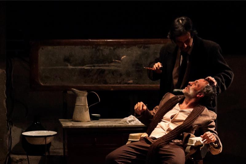 In scena presso il teatro Piccolo Bellini di Napoli dall’11 al 16 febbraio, il testo firmato da Rino Marino, autore palermitano, fondatore della compagnia Marino-Ferracane (Fabrizio Ferracane), quest’ultimo presente in scena nei panni dell’uomo con la bicicletta, e direttore della compagnia SUKAKAIFA, composta da pazienti con disagio psichico (Marino è infatti laureato in Medicina e Chirurgia, con specializzazione in psichiatria), nasce nel 2010 e debutta sulla scena nel 2011. Le ambientazioni ricordano sicuramente la messa in scena de LA MALAFESTA, esattamente ad un anno dal debutto di quest’altro testo, presso il Piccolo Bellini di Napoli: la luce calda, corredata di forti chiaroscuri sostenuti dalle luminescenze vibranti della candela, l’oscurità da cui fuoriescono i personaggi, il lampadario da bottega calato dall’alto, tutto è costruito nell’ottica di una caratterizzazione decadente, disturbata, “trapassata”, del luogo e dei personaggi. I luoghi immaginati da Marino sono personaggi essi stessi, così come gli oggetti: dalla bicicletta, alla statua del santo, al pennello e alla bacinella utilizzati per l’ultima rasatura. Il luogo, infatti, è un vecchio salone da barbiere, la cui natura e caratterizzazione sembrano dipanarsi solo in un secondo momento, come se l’idea definitiva affiorasse anch’essa dalle ombre di un passato ormai sepolto. In realtà la storia del barbiere costretto a chiudere per aver compiuto uno sgarro ad un personaggio noto del paese non dovrebbe essere descritta all’interno di una recensione, togliendo, così, il gusto della visione di uno spettacolo che si sofferma solo in ultima istanza sulla storia di fondo. La suspence e la curiosità, elementi tenuti accesi durante tutto lo spettacolo, ma soprattutto la malinconica aura che avvolge i due personaggi, emergono, invece, prepotentemente, sin dall’inizio. La malinconia, infatti, sembra essere costante, posandosi sulle vite dei due protagonisti e sugli oggetti, caratterizzando gli spettacoli e i testi firmati da Marino. I due personaggi, posti in coppia, secondo una costante consuetudine della drammaturgia contemporanea siciliana, appaiono come due aspetti di una stessa indole e conducono il loro dialogo, surreale, grottesco, ma profondamente poetico, all’interno di un ambiente che incarna una vita. I rumori, i colori, il vocio, sembrano elementi impressi nella mente dei due protagonisti, ma in realtà, il mondo esterno sembra essersi addormentato o dimenticato di quel luogo, di quella strada, di quel paese. Il buio incombe dietro i vetri opachi della porta della bottega, così come la luce entra con difficoltà o è soffocata da porte e persiane. Unico contatto con la realtà, con l’esterno, con la vita e con il futuro è rappresentato dalla bicicletta: derisa dal barbiere, condannato ad una vita di solitudine e di punizione, definita “ferrovecchio”, diventerà invece mezzo di rinascita e di movimento verso l’esterno, verso il viaggio della vita. L’uomo della bicicletta rappresenta il personaggio emblematico della scrittura di Marino: naturalmente è il folle della situazione, emarginato dalla società, colui che, però, secondo tradizione antica del teatro e della letteratura, dice la verità, ma soprattutto spinge l’altro personaggio, scontroso, burbero, scuro e affranto, a far emergere il suo racconto e le sue preoccupazioni. L’ex barbiere appare come l’uomo sconfitto dalla società omertosa e omologatrice: per questo motivo riesce ad esternare il suo pensiero e il suo dolore solo ad un uomo considerato folle da tutti. Quest’ultimo, interpretato da uno straordinario Fabrizio Ferracane, presenza incessante, animalesca, profondamente poetica, incalza una sorta di monologo-dialogo, in cui le domande poste restano per lo più senza risposta, sebbene il barbiere, Rino Marino appunto, intervenga sporadicamente, fino all’apice dell’esplosione. La tensione, dunque, e l’attesa sono decorate con ironia e da slanci di humor amaro. Il pazzo del paese, colui che percorre chilometri con la sua bicicletta, ha adottato questo metodo per far sciogliere i pensieri e farli galoppare liberamente. Nonostante alcuni momenti siano tirati a lungo ed estesi eccessivamente — come la scena conclusiva che viene “riempita” dalla filastrocca siciliana e dal sottofondo di “banniata” — il culmine viene raggiunto con la donazione della bicicletta: un passaggio di testimone, sull’uscio di quella bottega polverosa, affinché il barbiere possa riprendere in mano la sua vita, momento estremamente poetico e commovente, simbolo di una solitudine profonda che accompagna tutti gli uomini. Per questo motivo potremmo parlare di uno stesso personaggio e di una sua evoluzione, le cui passioni sono riportate in scena attraverso due corpi e due attitudini completamente diverse. Questo dimostra il connubio perfetto tra un travolgente e commovente Ferracane ed un rigido Marino, silenzioso, arido anche nella pronuncia delle battute: in assenza di questo necessario contrasto, interpretativo e scenico, nessuno dei due personaggi colpirebbe il pubblico che forse si annoierebbe. Questo dimostra che l’equilibrio è raggiunto.